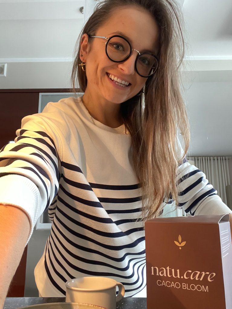 Ja na codzień stosuje kakaowy Kolagen od natu.care, który oprócz kolagenu i wit. C (ekstraktu z pąków dzikiej róży), zawiera dodatek niskocząteczkowego kwasu hialuronowego, L-teaniny, Koenzymu Q10 oraz kakao holenderskie. Uwielbiam wymieszać go z jogurtem kokosowym i borówkami – świetna opcja na słodką i odżywczą przekąskę!